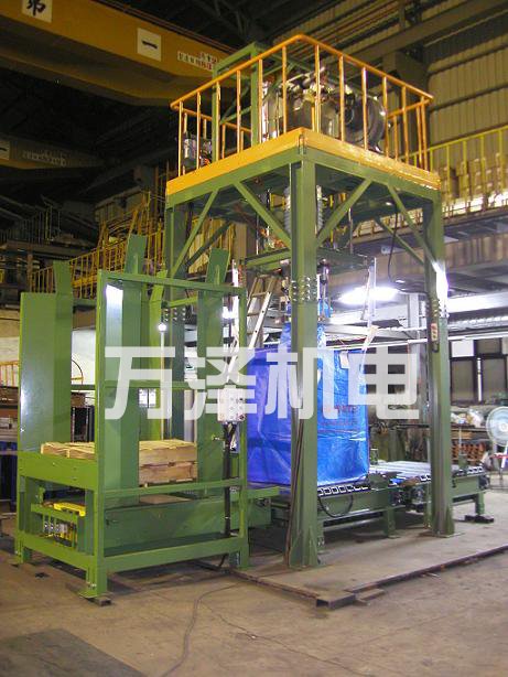 DCT1000-K2型块状物料吨袋包装机采用双速皮带给料,升降净重式称重、高精度传感器的计量结构,给料速度分为快慢双速给料,保证了称量的精度和速度。上袋后,包装机自动完成提升、称重、下降、松袋、脱钩、输送等工作过程。此型包装机在包装物料时,为了防止包装袋无法正常装入额定的物料,在包装中途可自动下降(次数可调),配合震动机构将物料震实后再自动提升继续完成包装(震动时间可调)。适用于10mm-50mm的块状物料的自动定量包装。